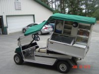 Got the call at about 11am. Something happened to the steering she said... I went out there and drove it back to the shop. The steering was fine. The BIG tree that jumped into the cart path was the problem. >{ Shes 17 and on the job for 3 weeks. At least she wasn't hurt. As you can see in the picture, the top drives side of the canvas hit the tree and brought it to an abrupt halt.